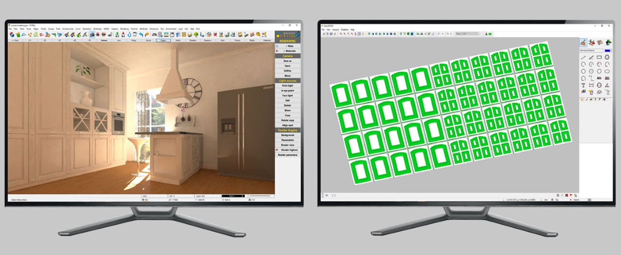 It is a parametric software that simplifies the realization of complex furniture shapes and helps you to interactively create parametric cabinets, drawers and fronts, double-sided cabinets, slanted and attic furniture, complex parts and their assembly frames, contoured panels and many other furniture elements. To make the production process even easier, CABINET also features automatic interfacing with CAM (automatic machining association) and dynamic hardware distribution, in 3D too.