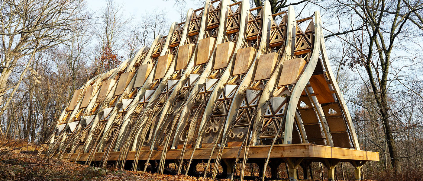 Terreform One, a nonprofit art, architecture and urban design research group is creating a new building north of New York City in a forest along the Hudson River that uses live trees that have been grown specifically for the purpose of forming a building structure. According to a report in Fast Company, it’s a technique that was once used thousands of years ago but had largely fallen out of favor due to the time it took to grow the trees for this specific use.